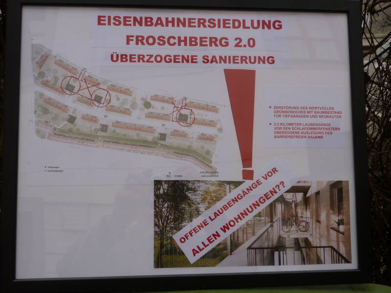 rund um das Projekt „Froschberg 2.0“ verdichten sich die Gerüchte – Nachverdichtung, Sanierung, Laubengänge, Tiefgaragen: Was kommt wirklich auf die Bewohner:innen der traditionsreichen Eisenbahnersiedlung zu?